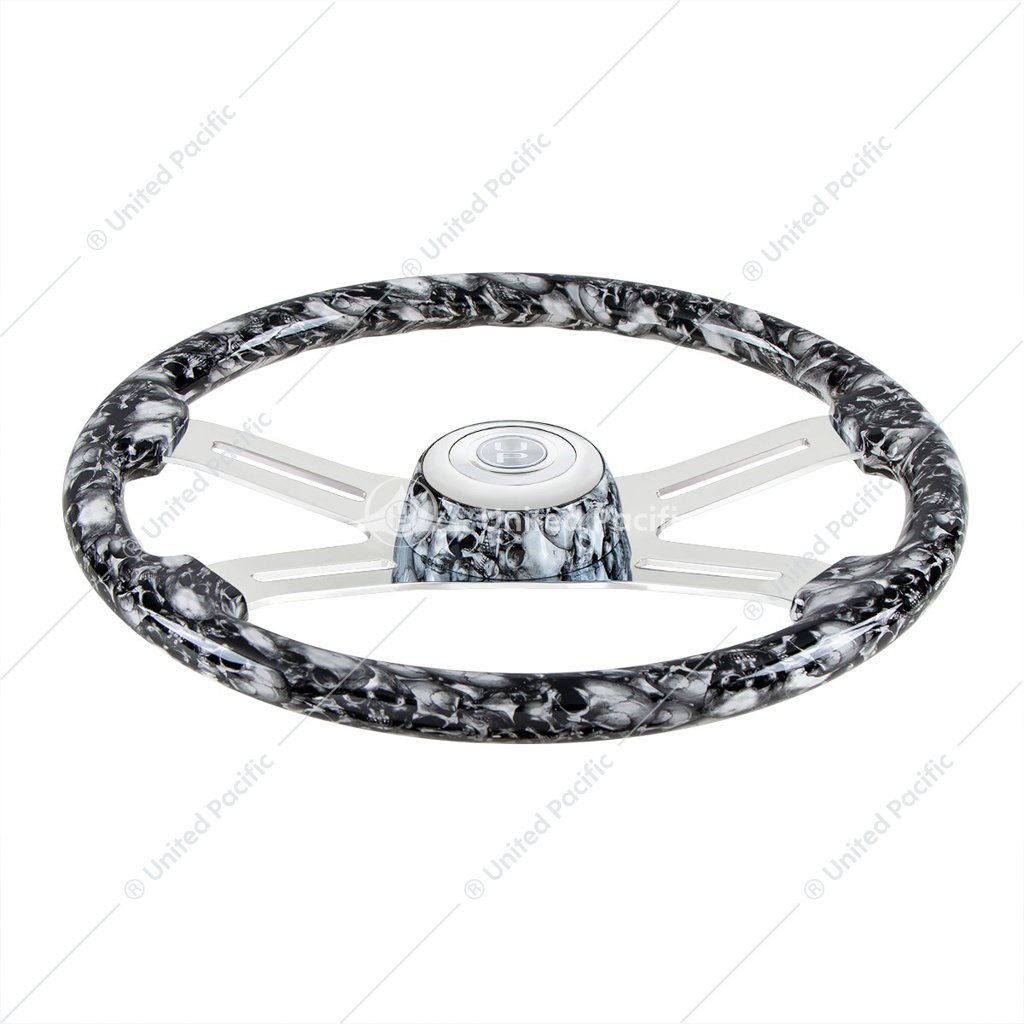 18" 4 Spoke Skull Steering Wheel With Matching Skull Horn Bezel - White -UP