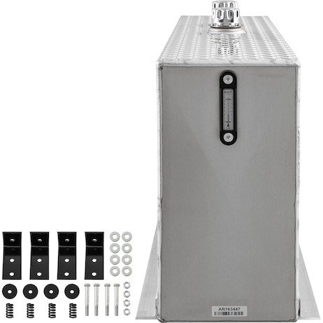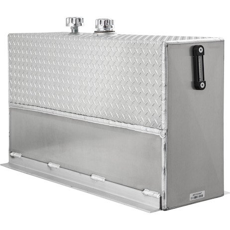 - The Upright Aluminum Reservoir from Buyers Products features high-quality aluminum construction for lighter weight and excellent heat dissipation. It includes a diamond tread finish on the upper half and is mounted behind the cab, making it an attractive and convenient addition to your truck.