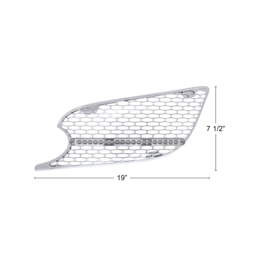 - Chrome platstic air intake grille with LED lights for 2012 and newer Peterbilt 579 trucks.