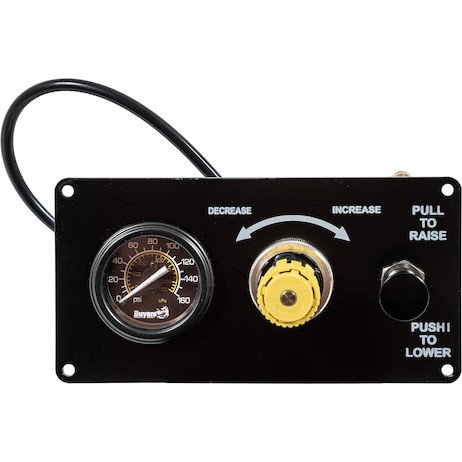 • Buyers Products Lift Axle Control Assembly with Push-Pull Air Valve provides in-cab controls for air suspension and lift axle. Each unit comes pre-plumbed and assembled and includes fittings/DOT tubing and a mounting plate. The steel mounting plate is powder coated for corrosion resistance.