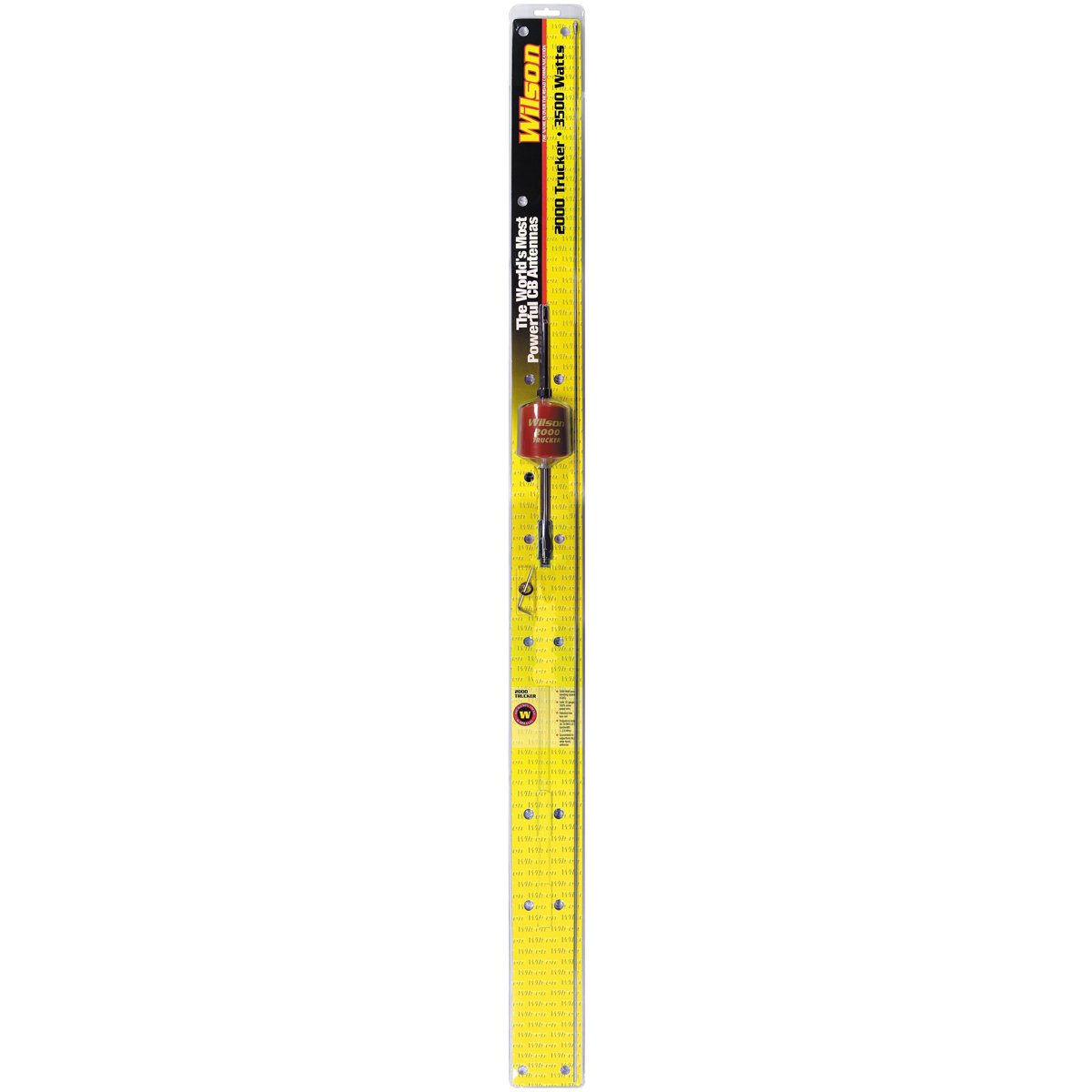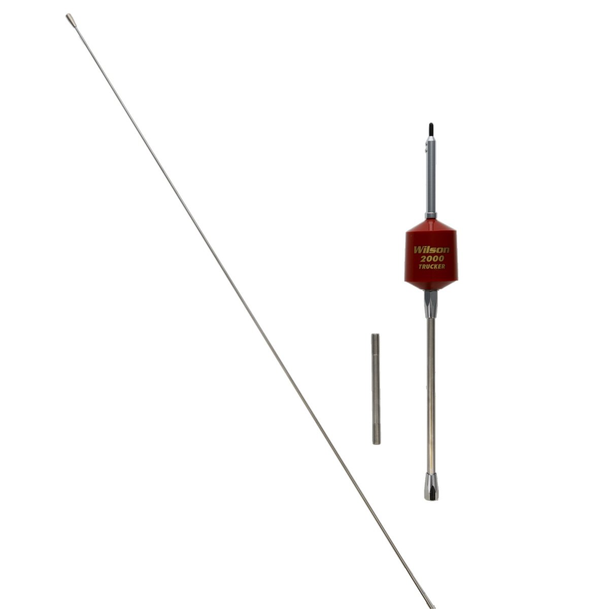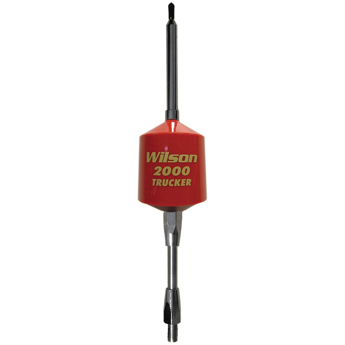 The T2000 Series mobile CB trucker antenna with 5-inch shaft in red with 49-inch stainless steel whip rated at 3500 Watts. Standard .375-inch x 24-inch chromed brass ferrule. Larger coiled housing allows for increased power handling. The patented low loss air wound coil design uses 10-gauge silver plated wire. The red coil is made of high-impact engineered thermoplastic. Frequency range of 26MHz to 30MHz for happy DXing. Includes static-reducing weather cap and is weather-band ready. Set screw and hex key included for fine tuning. The Wilson Trucker will operate excellently in a dual configuration. Ideally this should be mounted so that the coil is above the vehicle body of your truck. (Not for use with a magnetic mount) The Wilson 305-492 T2000 Series CB Trucker Antenna is a popular choice among truck drivers and CB radio enthusiasts. This antenna is designed to provide high-performance communication for those who need it on the go.