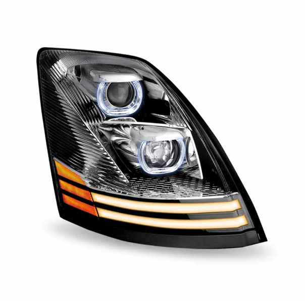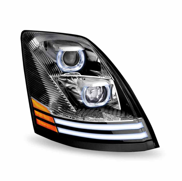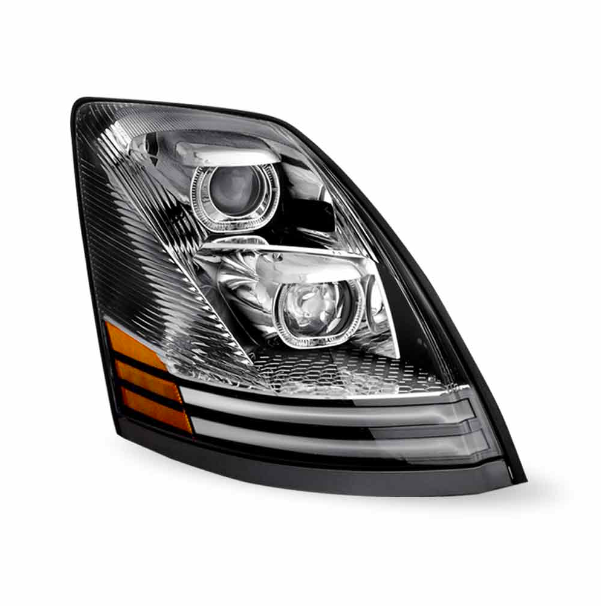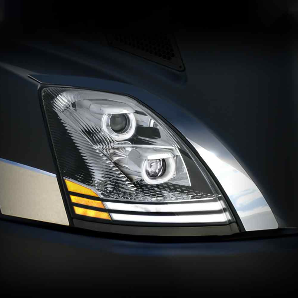 | Product Description | Turn & Marker Accents – Passenger Side, Volvo VN/VNL LED Projector Chrome Headlight Assembly with LED Glow Position |